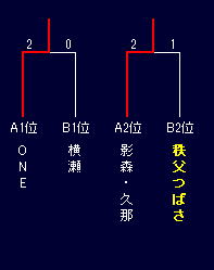 | 影森・久那 | ※ | 0−2 | 2−0 | 3 | 2 | 2 | 0 | 2 |