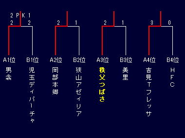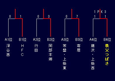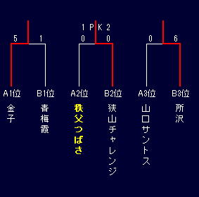 | 秩父つばさ | 2-0 | ※ | 0-3 | 0-1 | 3 | 2 | 4 | -2 | 3 |